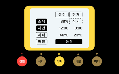 물을 받고 전원버튼을 누르고, 히터버튼을 눌러주십시오.